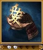 據傳為日本某位武將所穿戴的頭盔。前端安寫有「愛」字的裝飾用鐵器(立物)。立物原本雖僅大將才可安裝,也具固定外形,但近年也對下級士兵開放。造型亦多樣化,別出心裁。