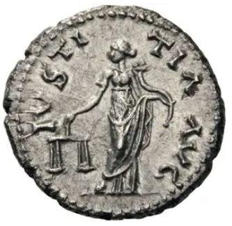 圖示︰羅馬鑄造的銀幣(背面) - 朱斯提提亞女神