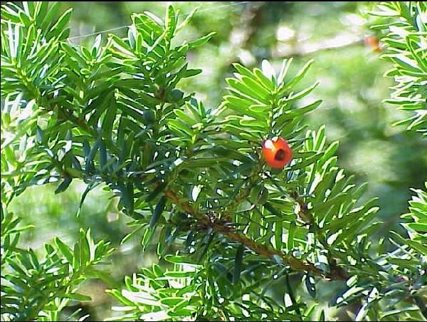 歐洲庭園常見的針葉樹。紅色的果實可食用,種子有毒。常被種植於英格蘭、愛爾蘭的教會。又稱「紅豆杉」。