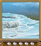 土耳其西部的廣闊石灰華段丘,也被叫做棉花宮殿。白色的岩冗看地起來像棉花一樣膨脹,還有噴湧出的溫泉形成一幅美麗的光景。山丘上有著希拉波利斯遺跡,在羅馬帝國時曾經是繁榮的度假地。