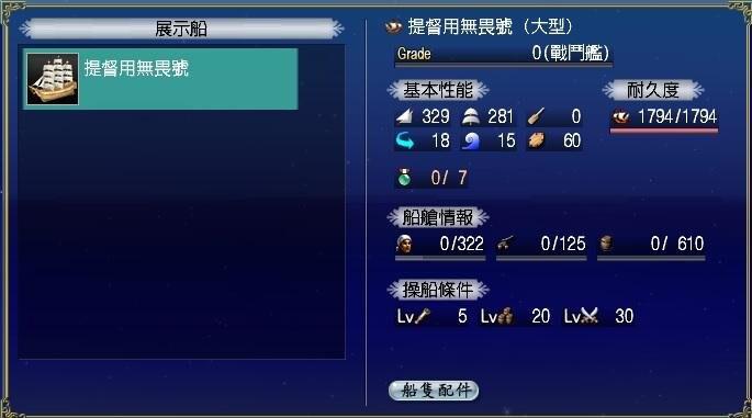 船艦名稱 船型 熟練度 原型船隻