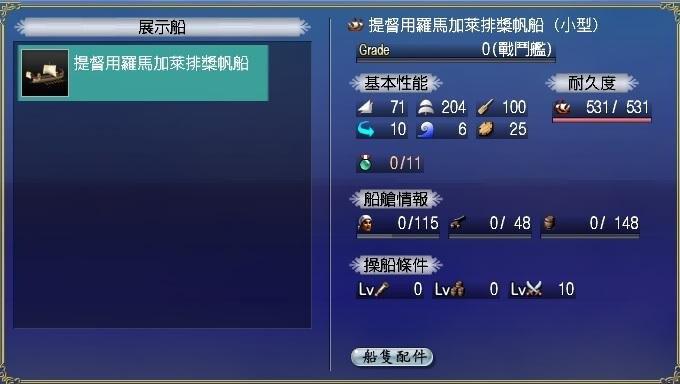 | 提督用羅馬加萊排槳帆船 | 小型2 | 80 | 羅馬加萊排槳帆船(小型船) | |||||||||||