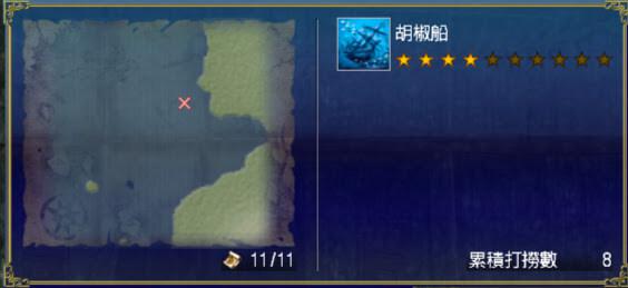 | 物品 | ※裝備︰◎紫水晶髮飾、◎石榴石耳環、◎星彩紅寶石胸針、◎蛋白石耳環、縞瑪瑙耳環 ※消耗品︰純鐵板金、強化鋼板金 ※交易品︰◎黑礦石、金工藝品、子彈、銀、鋼、砲彈、葡萄醋 ※船部品︰特製甲板砲14門 加農砲14門、重裝備船尾樓、滾軋鐵板、主桅高支索帆 ※造船素材︰繩索、上質索具、特殊鉛彈、金庫、大型特訂槳 |