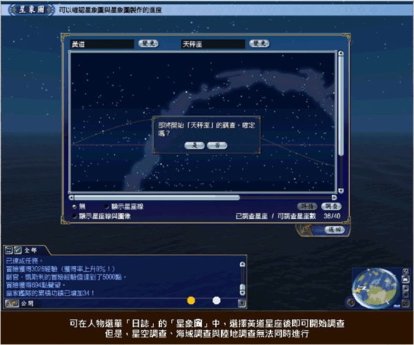 | 除了南天・北天的星座之外,本次也會有全新的黄道星座登場。 完成各種調查來收集星座的情報,完成全天星圖的目標吧。 |