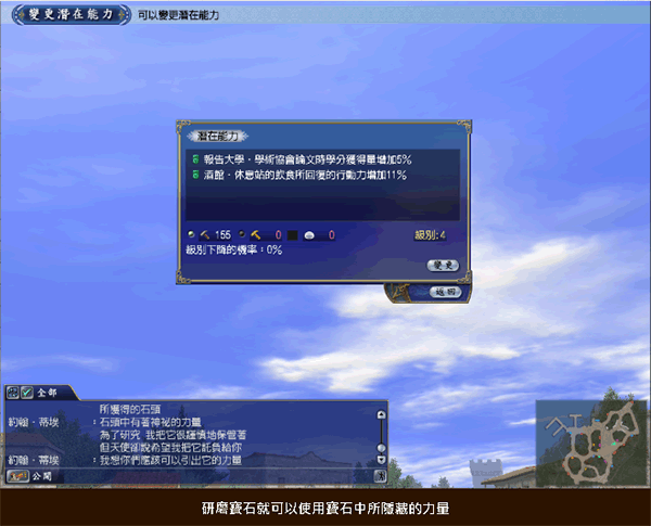 | 透過達成特定的任務可以發現新的寶石。 可以在人物選單的「潛在能力」中確認所獲得的寶石與生效中的潛在能力。 |