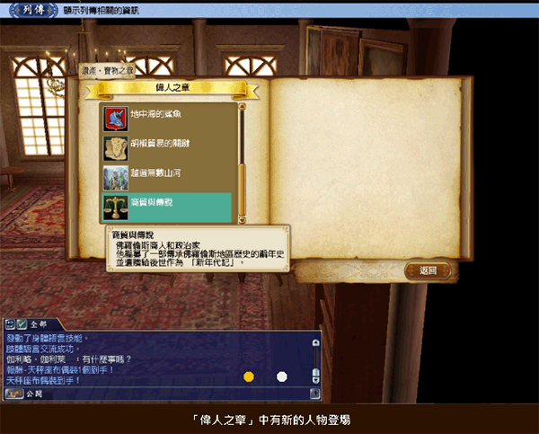 | 開啟「睿智之書」中的「偉人之章」,就能查看追加人物的資訊。 ※當列傳發生地點的到達條件尚未達成時有可能無法進行列傳。 |
