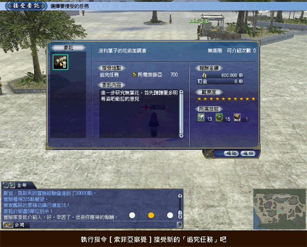 | 從冒險者公會的委託介紹人處可以接取新的發現任務。 並且還有新的追究任務・追究發現物。 |