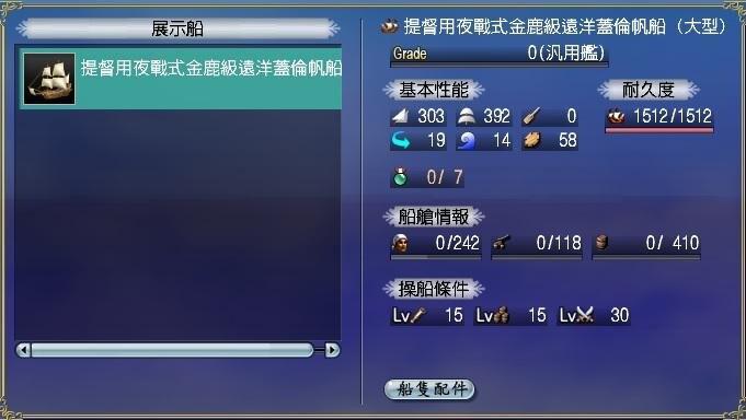 | 提督用夜戰式金鹿級遠洋蓋倫帆船 | 大型2 | 200 | 金鹿級遠洋蓋倫帆船 | |||||||||||