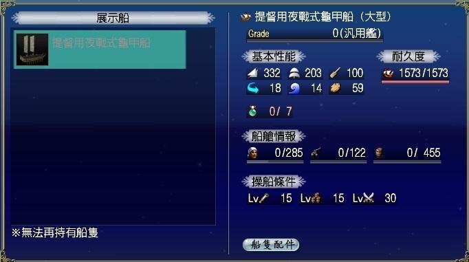 | 提督用夜戰式龜甲船 | 大型2 | 200 | 裝甲龜甲船 | |||||||||||