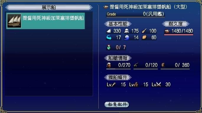 | 提督用死神級加萊塞排槳帆船 | 大型2 | 200 | 死神級加萊塞排槳帆船 | |||||||||||